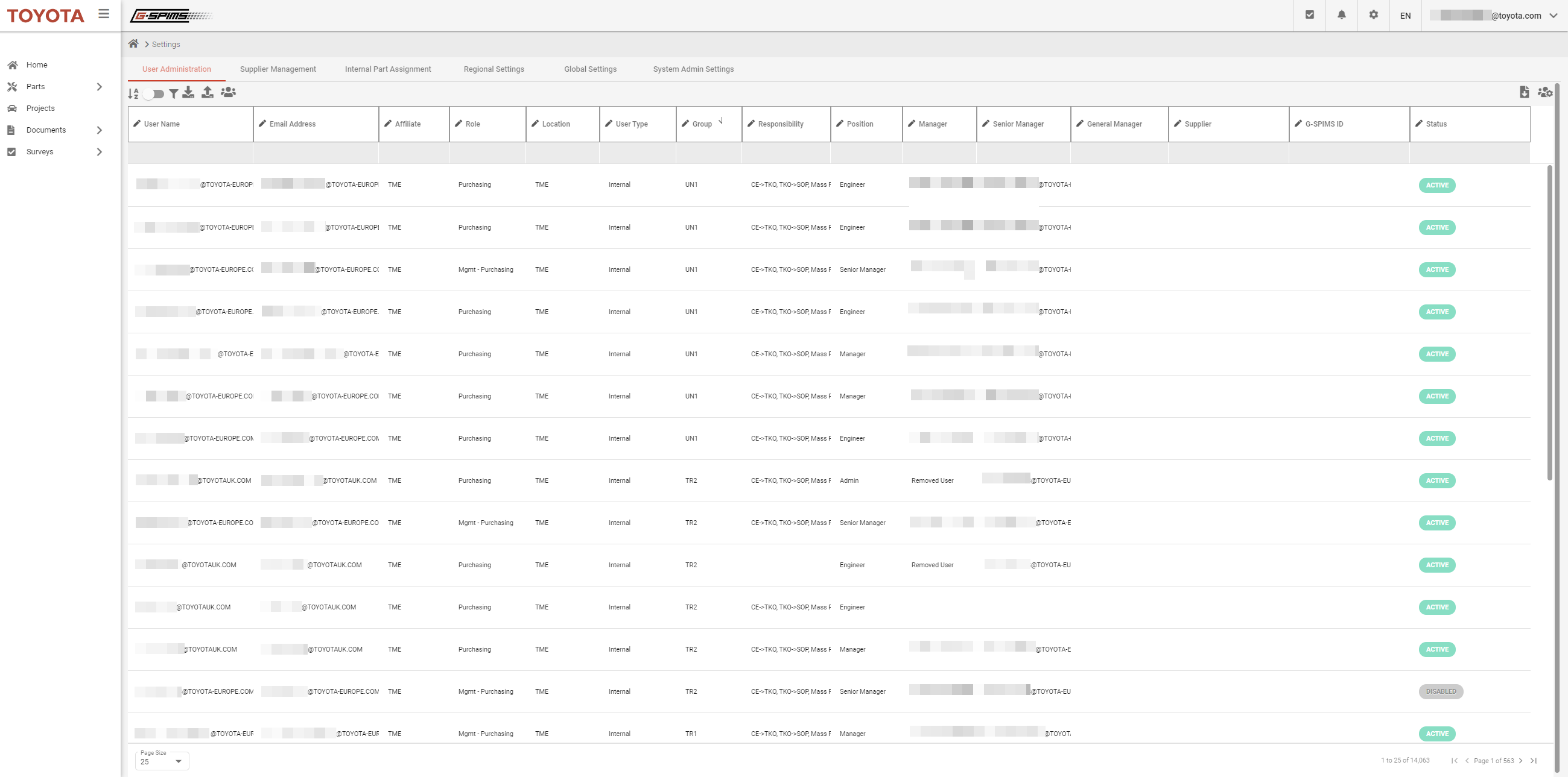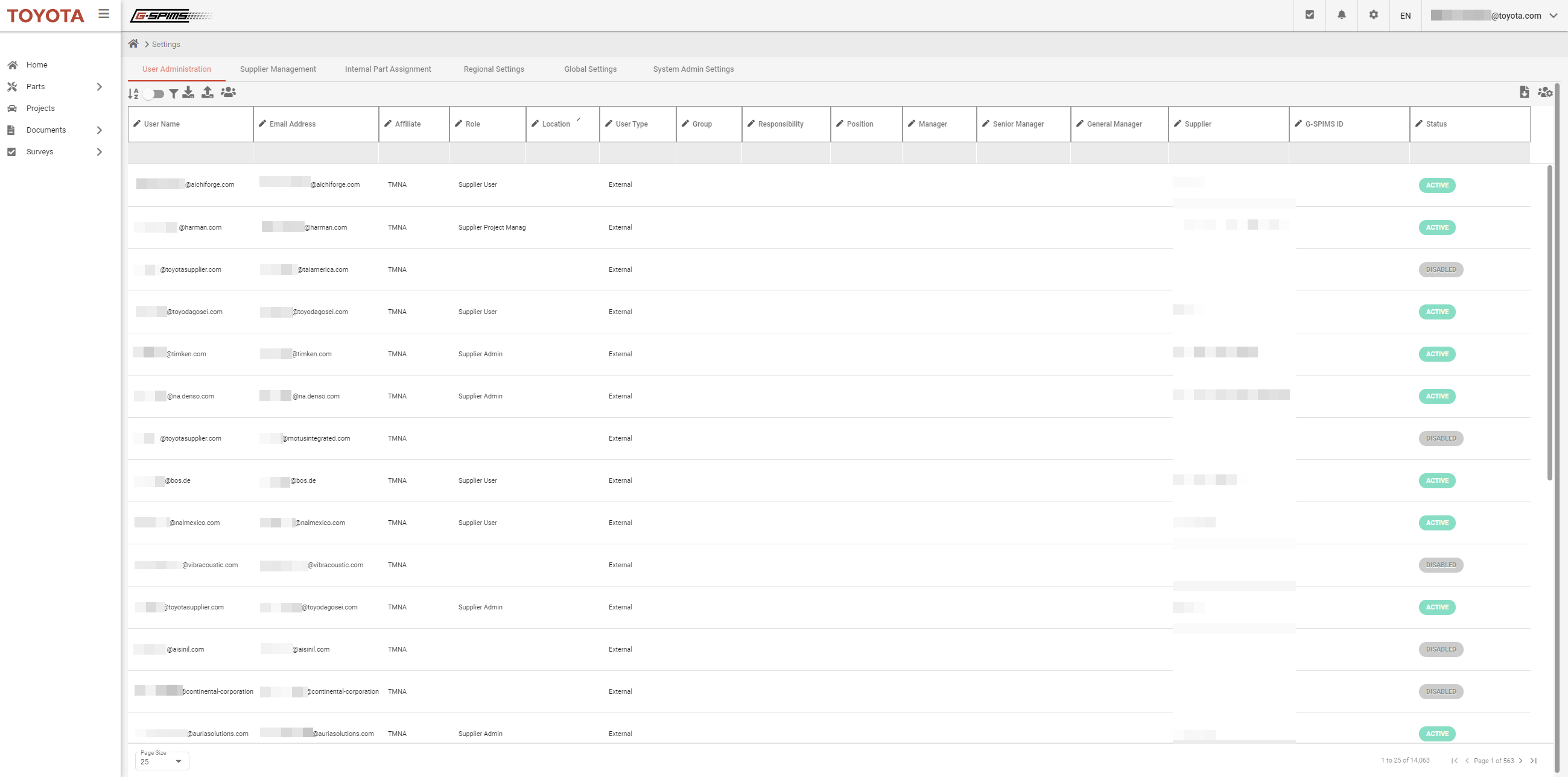 I discovered what was essentially a backdoor login mechanism in the Toyota GSPIMS website/application that allowed me to log in as any corporate Toyota user or supplier just by knowing their email. I eventually uncovered a system administrator email and was able to log in to their account. Once that was done, I had full control over the entire global system. I used the word “staggering” to describe the amount of data I had access to in the Jacuzzi SmartTub hack, but that was relatively minor compared to this. I had full access to internal Toyota projects, documents, and user accounts, including user accounts of Toyota’s external partners/suppliers. External accounts include users from: