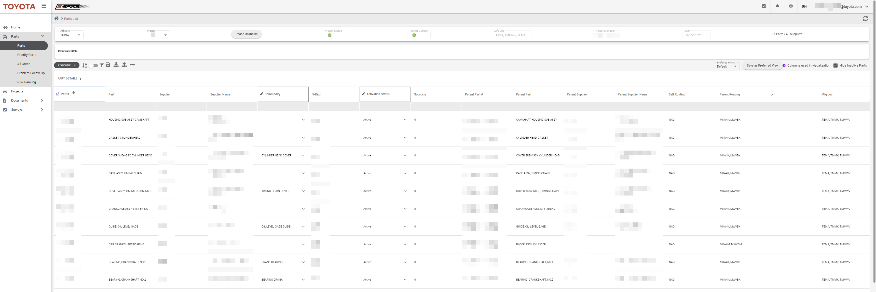 You could also see all the suppliers and how Toyota ranks them regarding risk, delivery, and prep. There are almost 3,000 of them: