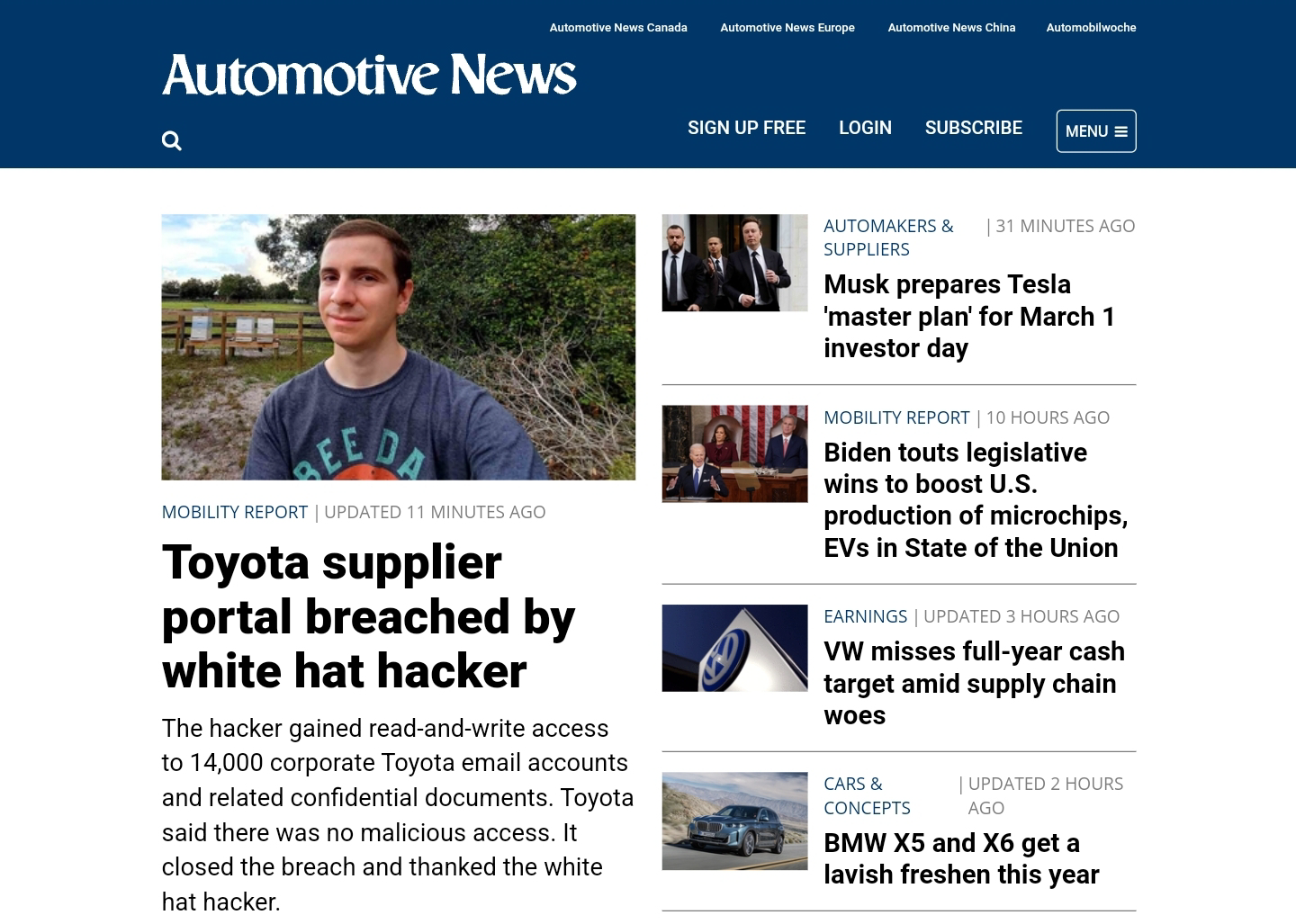Thanks to this responsible disclosure, Toyota avoided what could have been a catastrophic leak of not only their own employees’ data, but the data of their partners/suppliers. Embarrassing internal comments and supplier rankings could have been published for the world to see. Toyota and their suppliers have been hit by cyberattacks before and it could have easily happened again.
